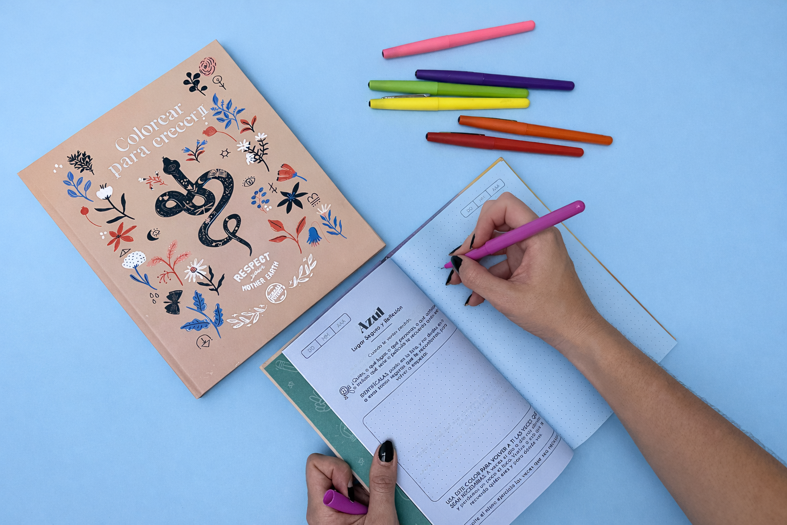 Esta pensado para tu bienestar emocional diario. Combina el pintar con retos simples y un diario de emociones para escribir, soltar y entender cómo te sientes.